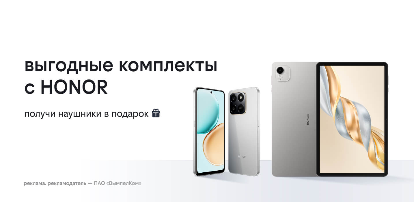 с 13 февраля до 9 марта 2026 года дарим беспроводные наушники при покупке смартфона или планшета HONOR в интернет-магазине